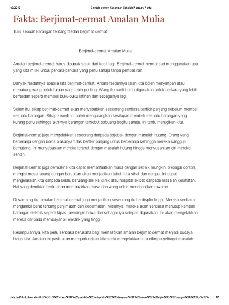 Contoh Contoh Karangan Sekolah Rendah Fakta Berjimat Cermat Amalan Mulia Pdf